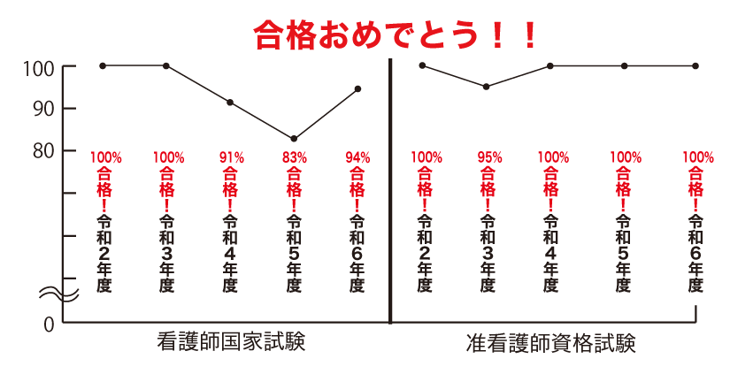 A :令和6年度卒業生について、看護学科・准看護学科の就職希望者は、ほぼ100%就職しています。 |