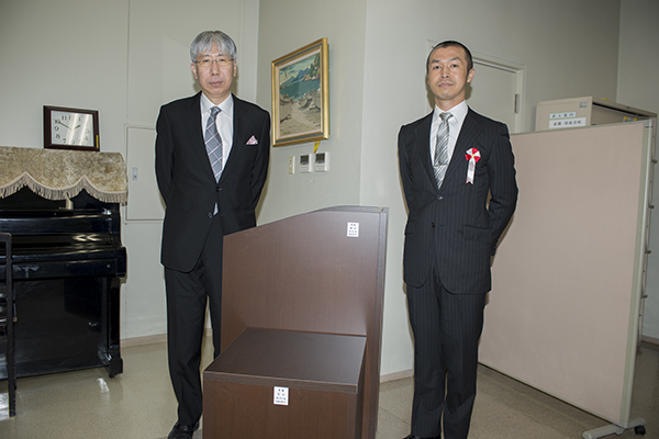 平成29年8月、あじさい会より演台・花台1台・椅子50脚・音響設備一式を寄贈して頂きました。